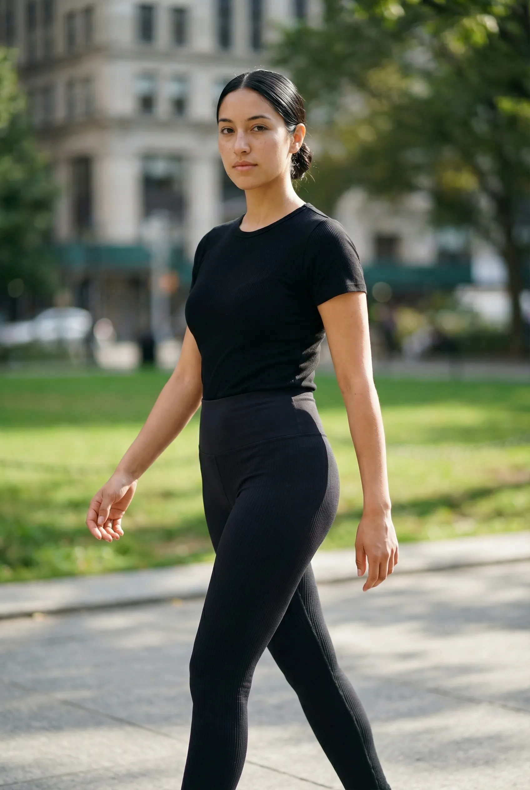 Suave, elástico y favorecedor, es la elección perfecta para sentirte segura y estilizada tanto en una sesión de yoga como en un look casual de fin de semana.